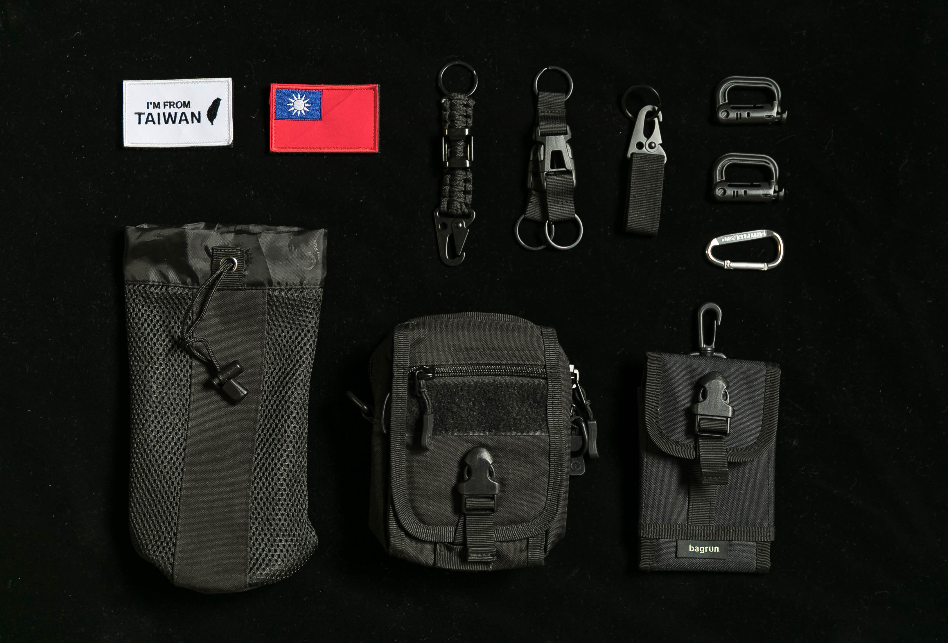 bagrun軍規機能背包的配件裡,我個人比較推薦的幾個,從水壺袋、隨身手機袋、鑰匙圈到開瓶器或D型扣環等。以我自己的狀況來說,因為時常需要到國外出差採訪,經常背著許多攝影器材到處跑,在不影響背包內部空間以及器材受到擠壓的疑慮下,加裝上軍規的網布水壺袋,所有問題就一次解決,重點是裝上去看起來整體還更有型。
