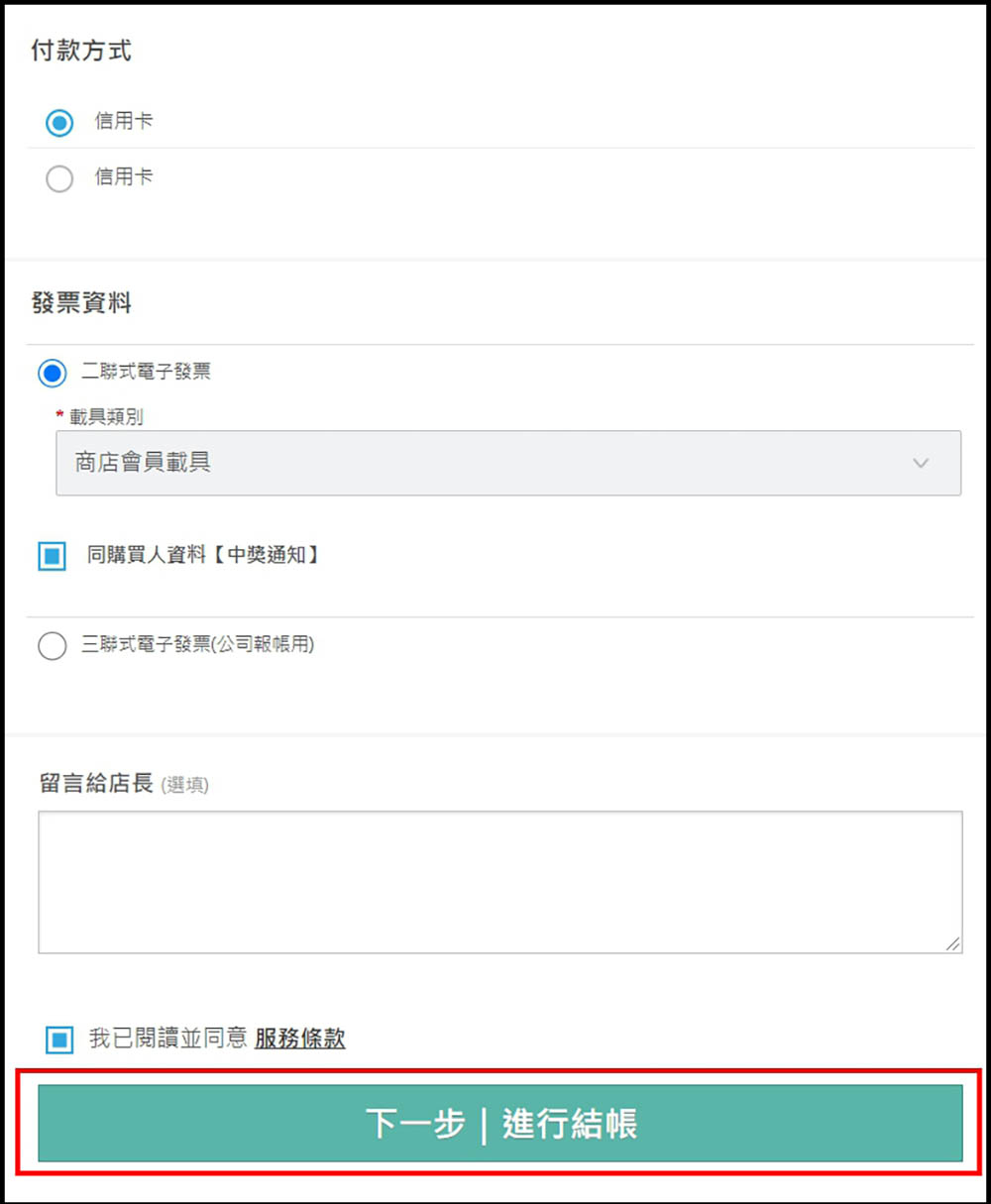 3、最後選擇「進行結帳」,填寫信用卡資訊即完成購買。