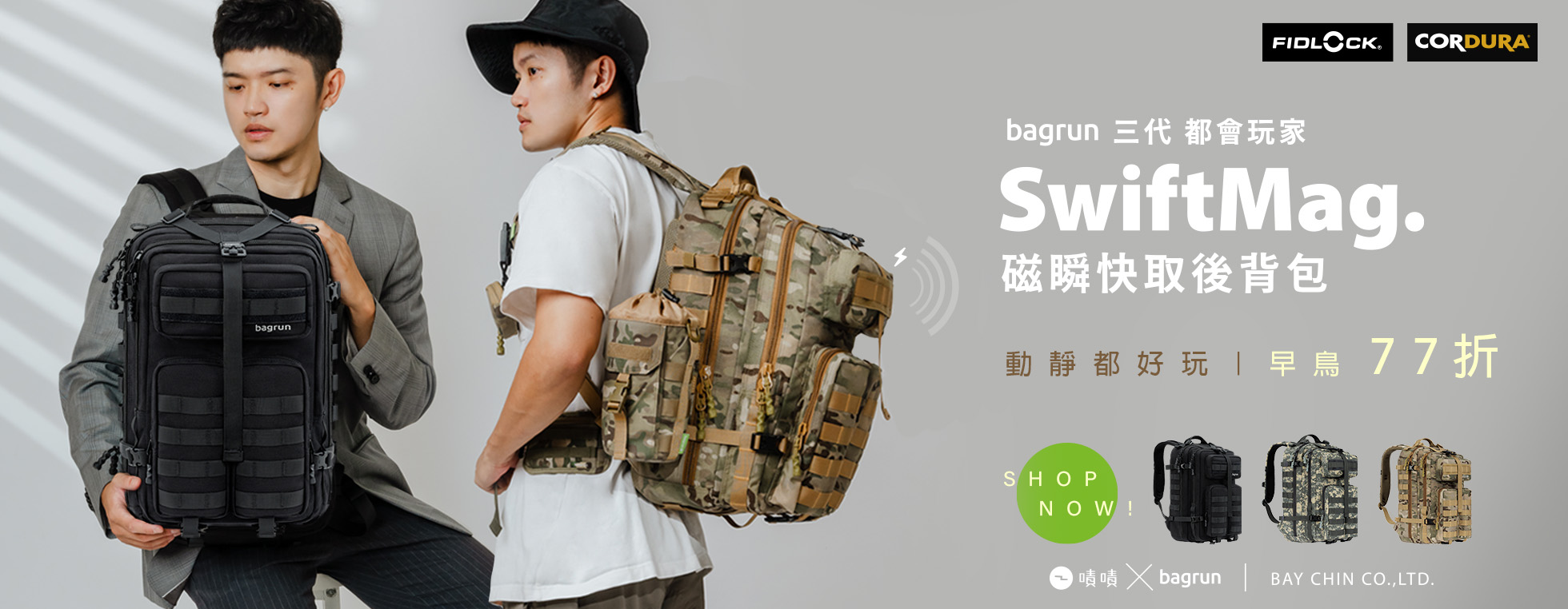bagrun,解鎖生活的無限可能,超越極限的三代都會玩家軍風後背包,現正預購中!