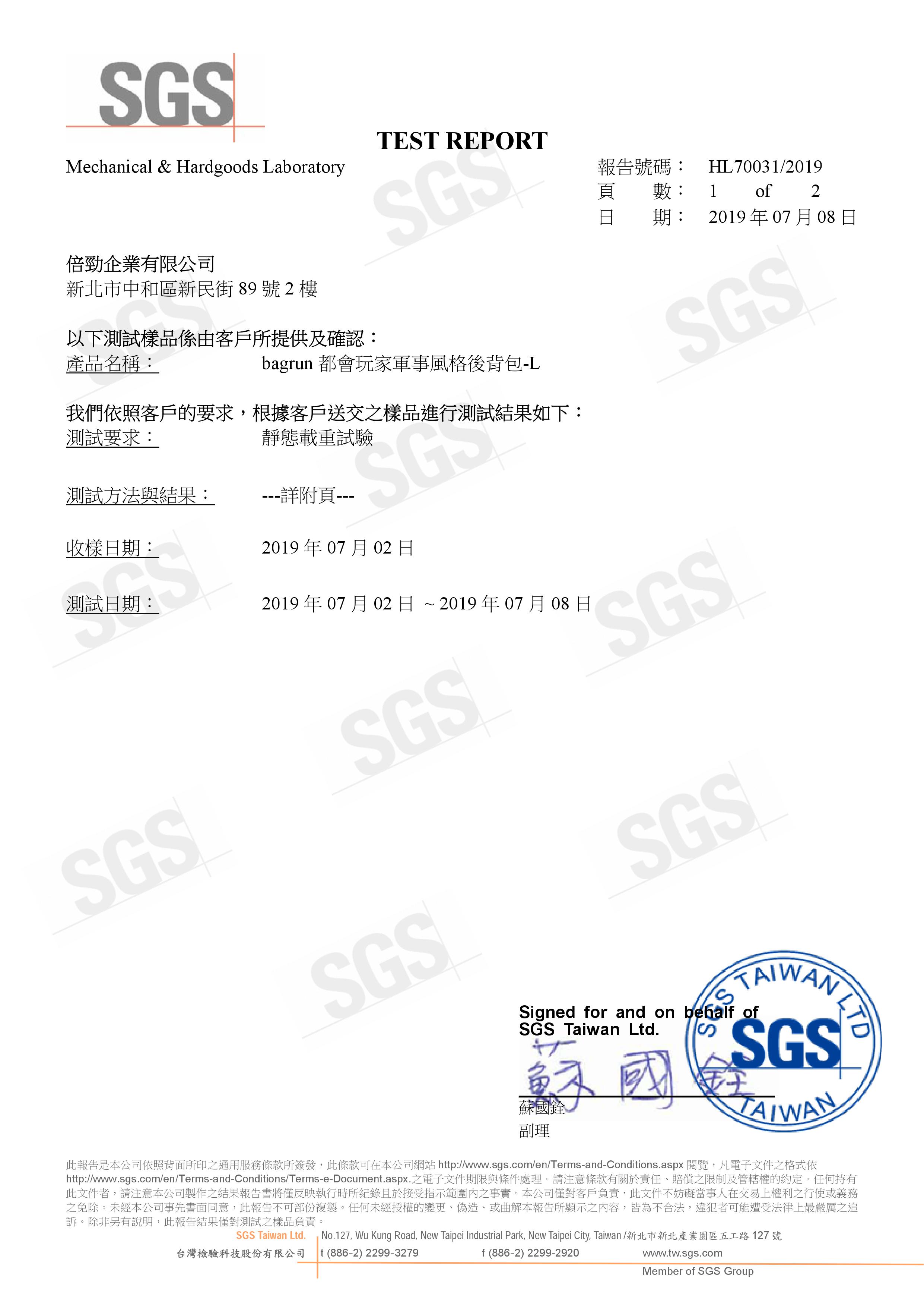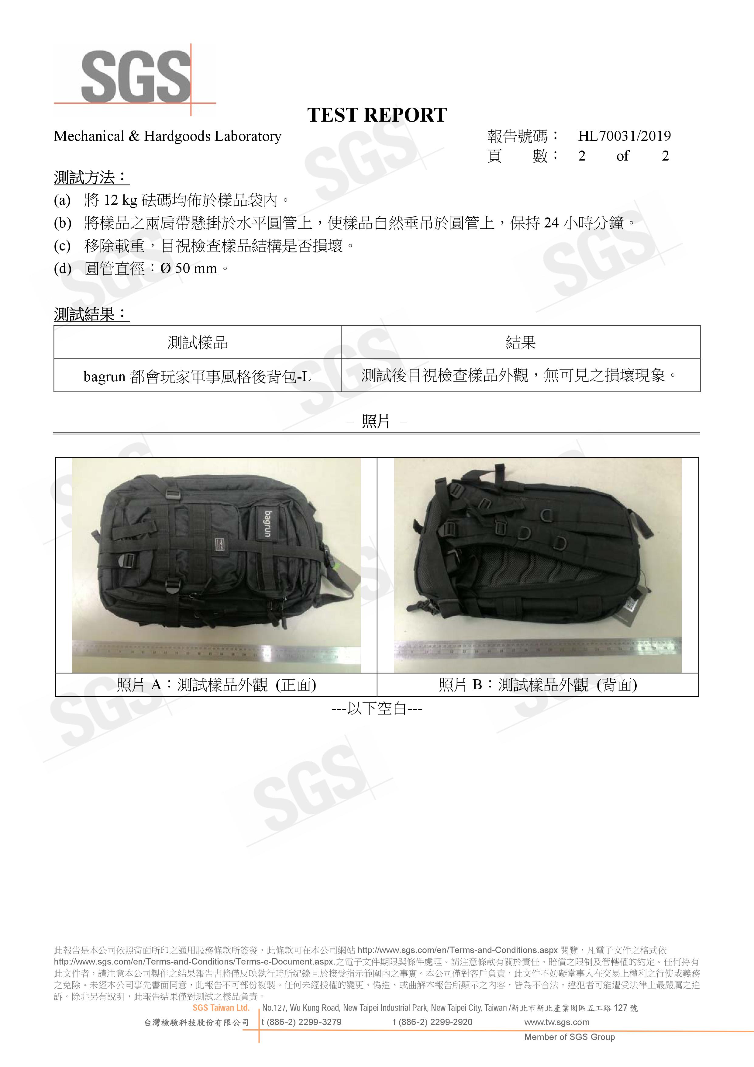 【SGS測試】連續24小時揹負12公斤無任何損壞