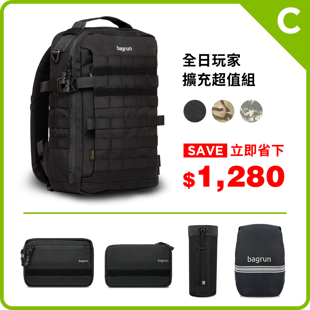 bagrun團隊特別針對台灣人日常使用背包的習慣與喜好,打造出這款輕量、耐磨、具超強擴充性能的後背包,適合習慣每天背後背包出門的人,使用立挺有型的軍規機能面料,用久也不扁塌。