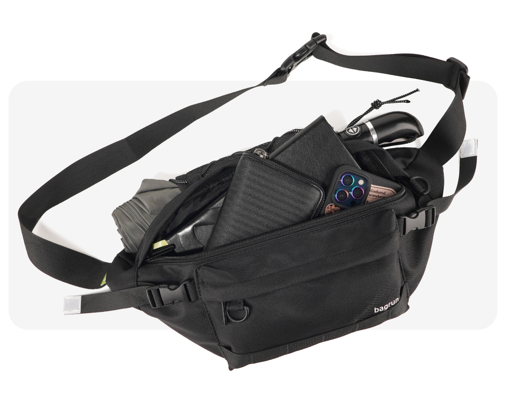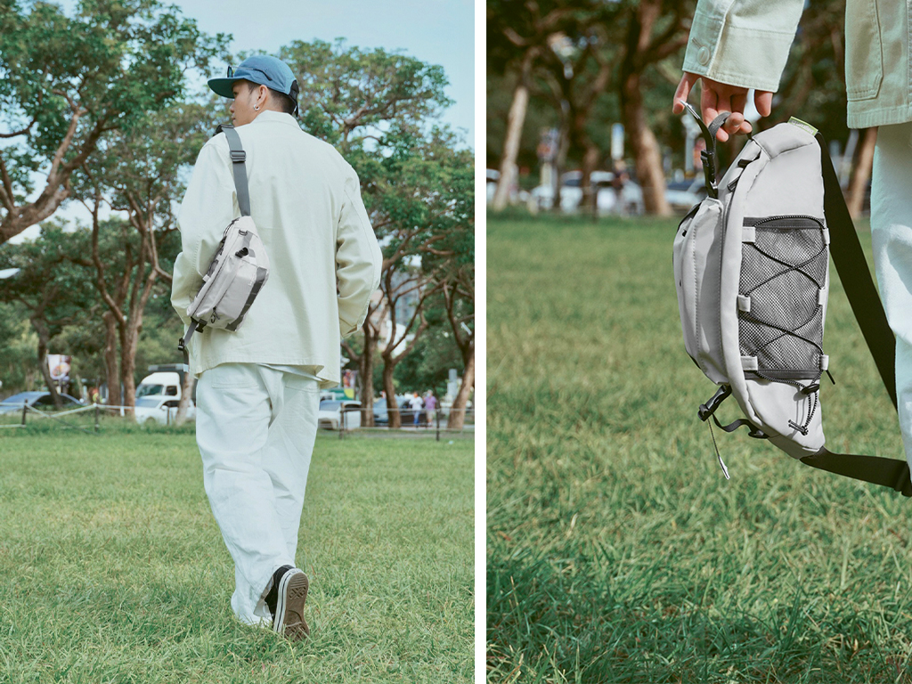 | 輕鬆分層管理內部空間,馬上找到自己的東西 | 插扣式設計,一秒快速穿脫胸包